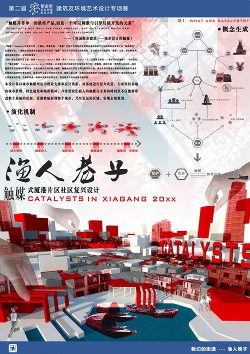 本設(shè)計(jì)將以城市觸媒理論為理論支撐和設(shè)計(jì)依據(jù),對(duì)基地街道進(jìn)行復(fù)興改造,力求保持基地原有的街道肌理。通過特色街巷的打造和場(chǎng)所精神的重塑,從而促使觸媒的發(fā)酵與新生;但觸媒并非單一的最終產(chǎn)品,而是一個(gè)可以刺激與引導(dǎo)后續(xù)開發(fā)的元素,我們希望植入的觸媒在未來不僅能夠帶動(dòng)整個(gè)街巷的更新,更能夠輻射到整個(gè)城市,乃至更遠(yuǎn)的區(qū)域,實(shí)現(xiàn)永續(xù)規(guī)劃。