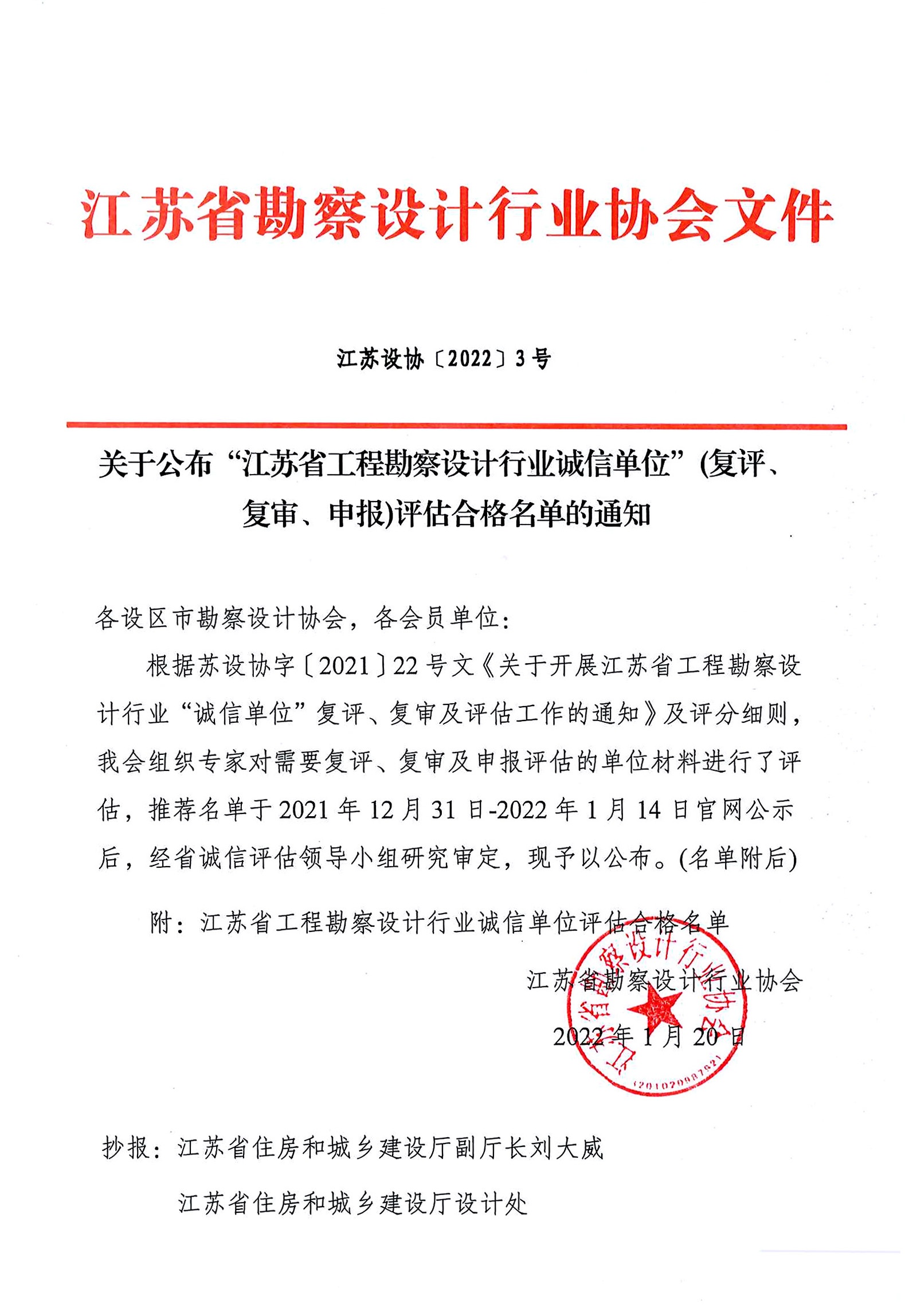 江蘇省工程勘察設計行業(yè)誠信單位(復審名單)